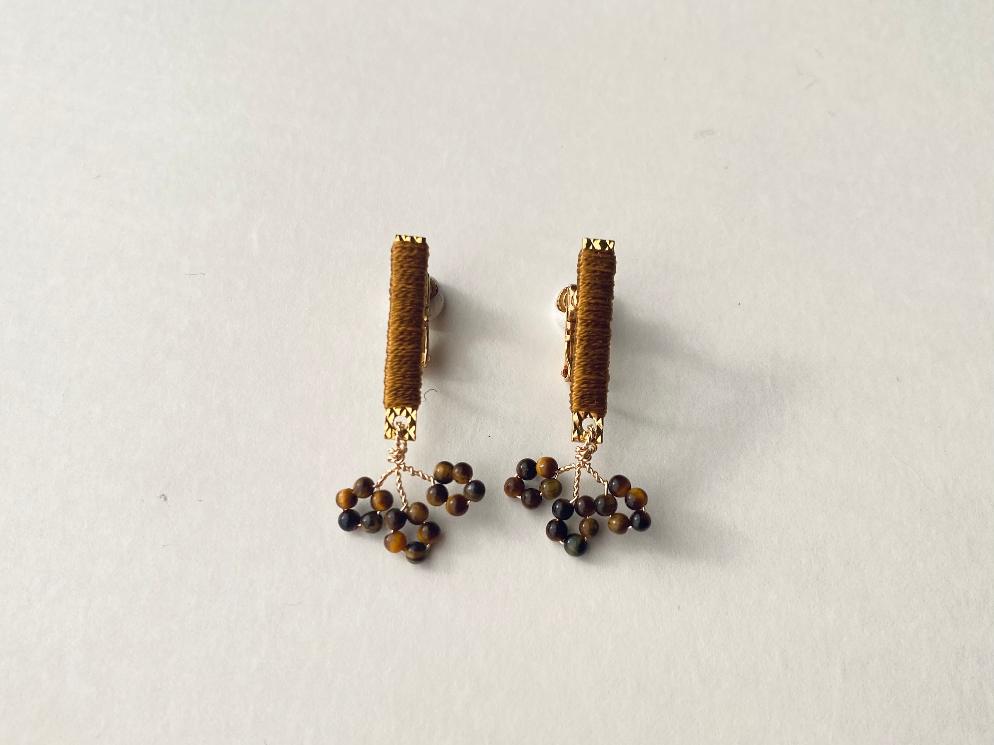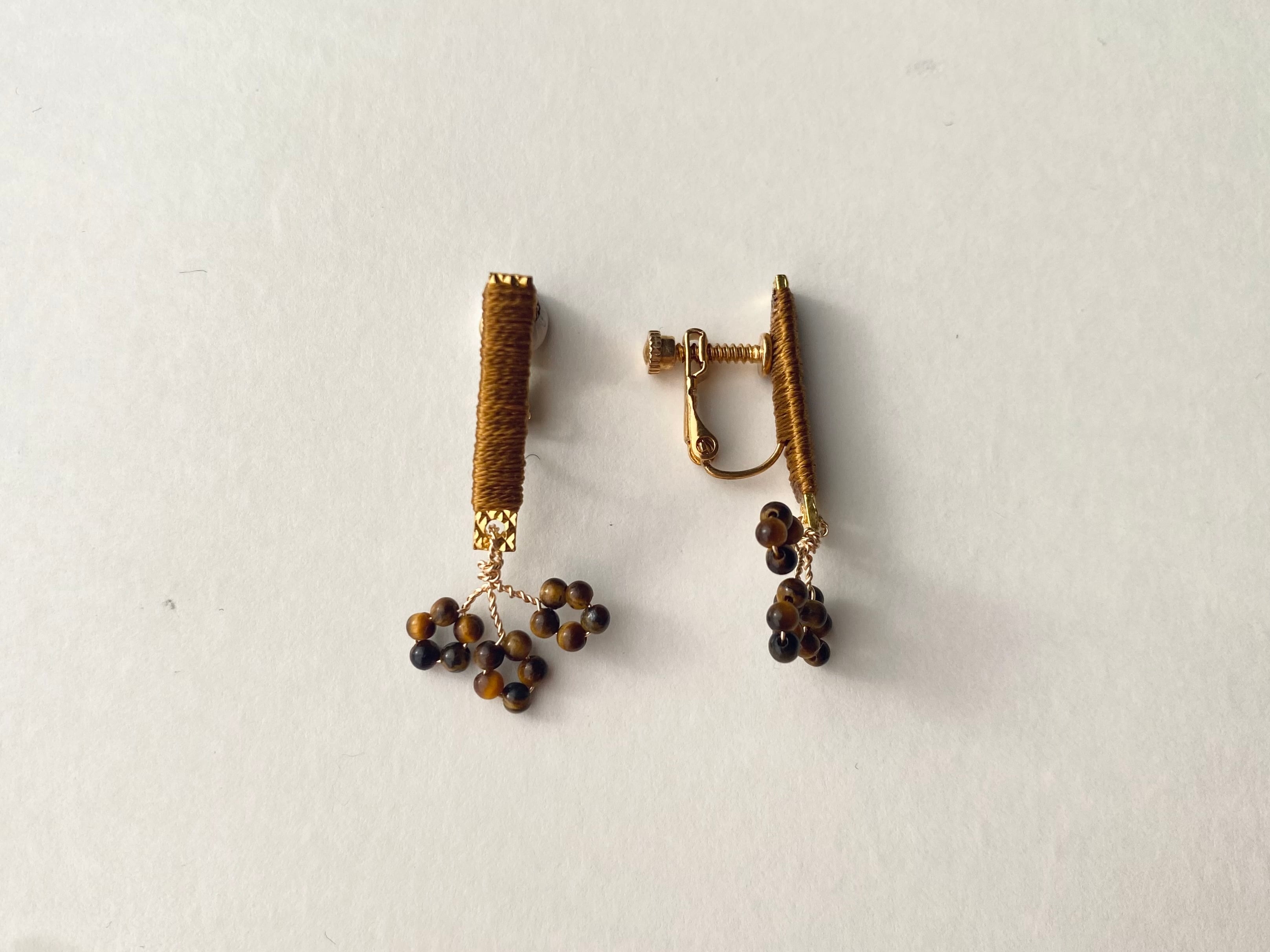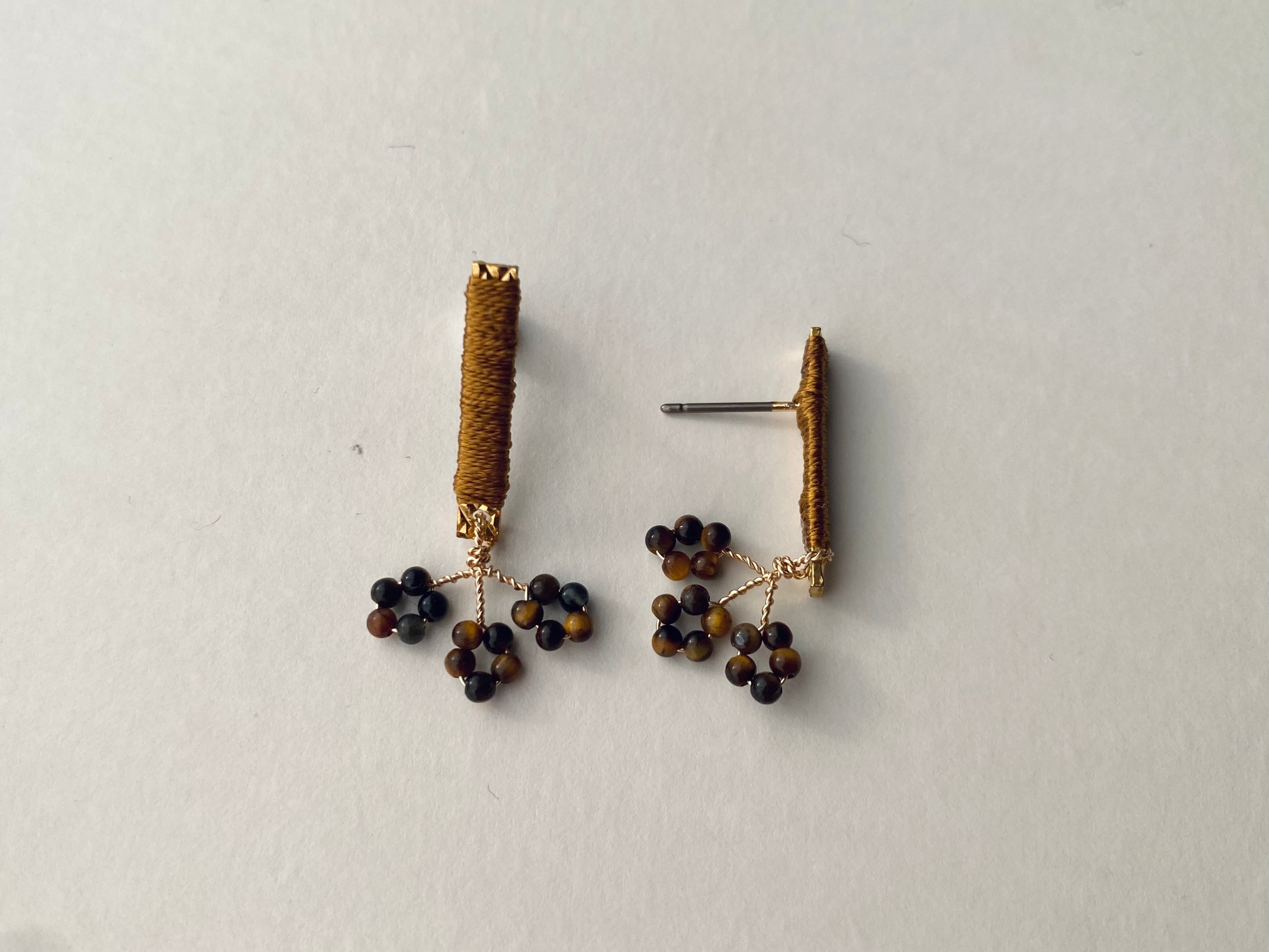 キャメルカラーのスティックピアス・イヤリングは、シンプルながらも個性的な存在感があります。