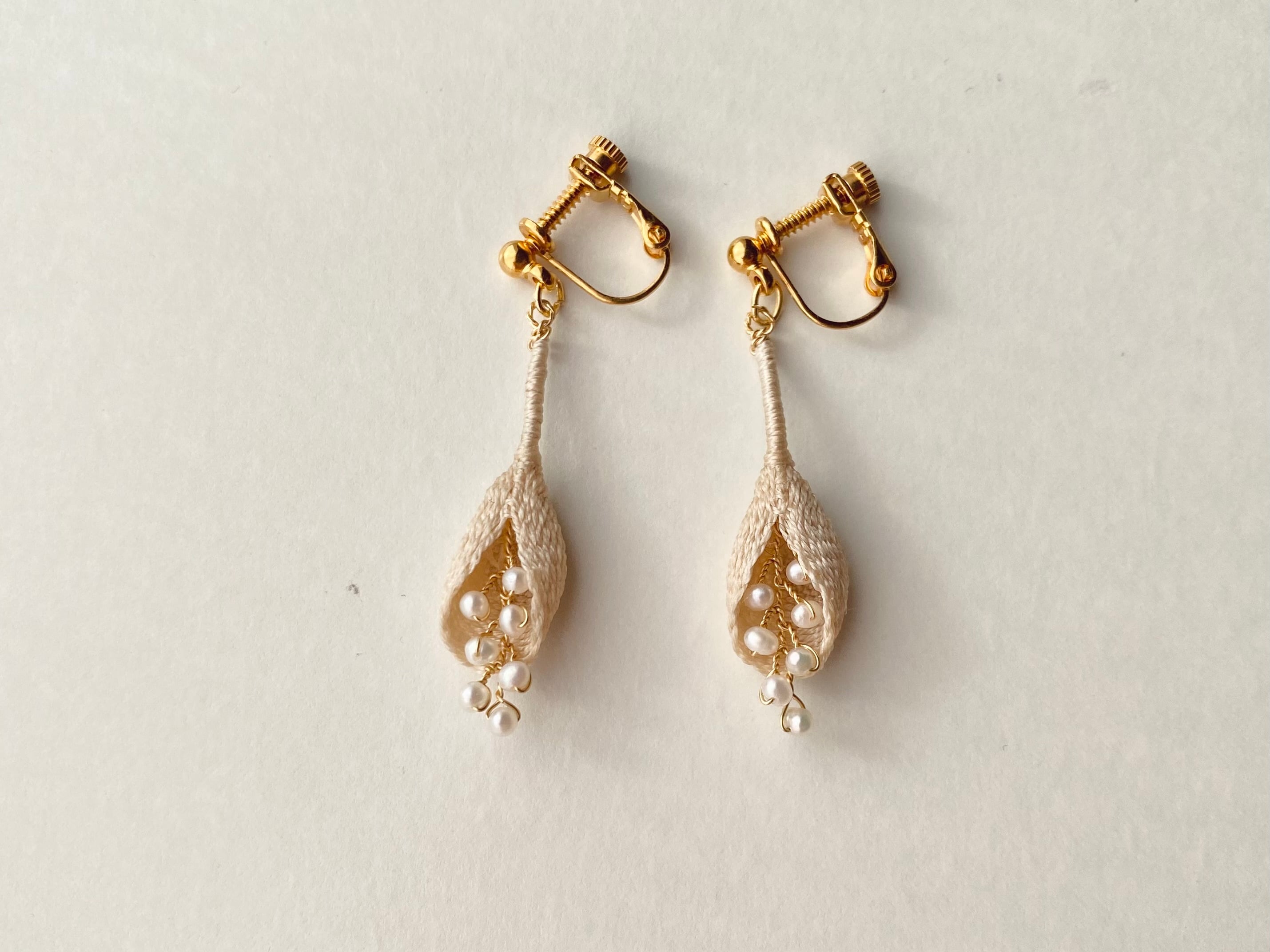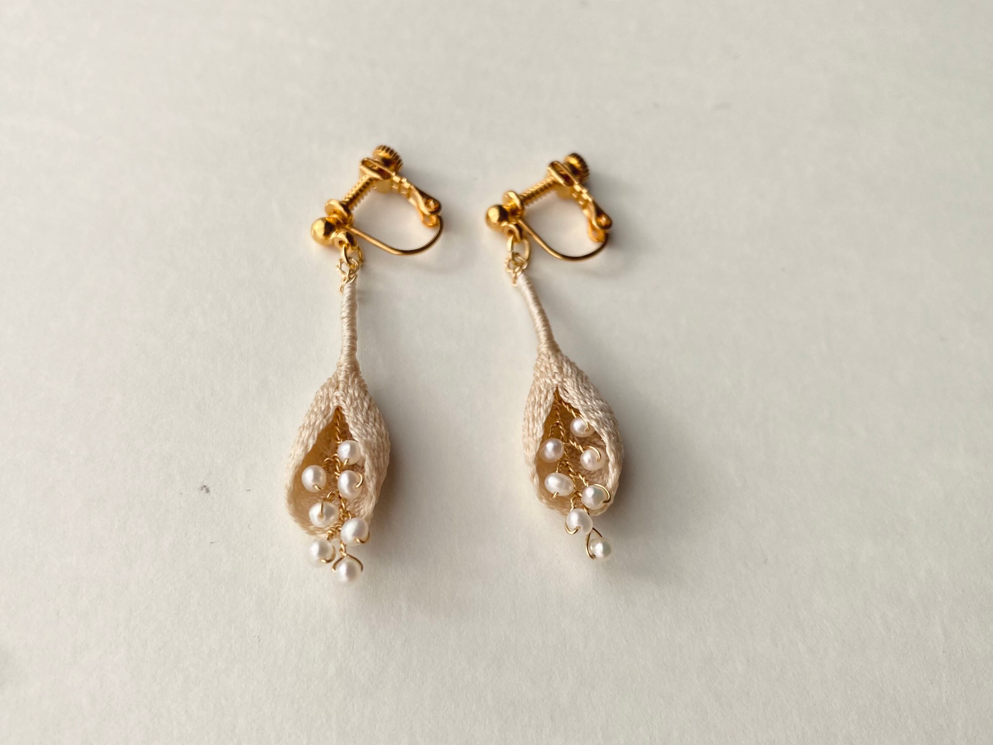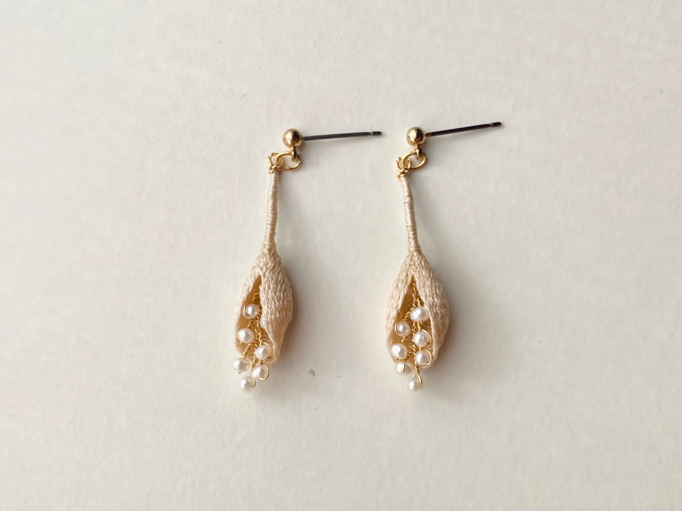 柔らかなクリームカラーでつけ心地も軽やかなtsubomiピアスは、日常のコーディネートに華やかさをプラスします。