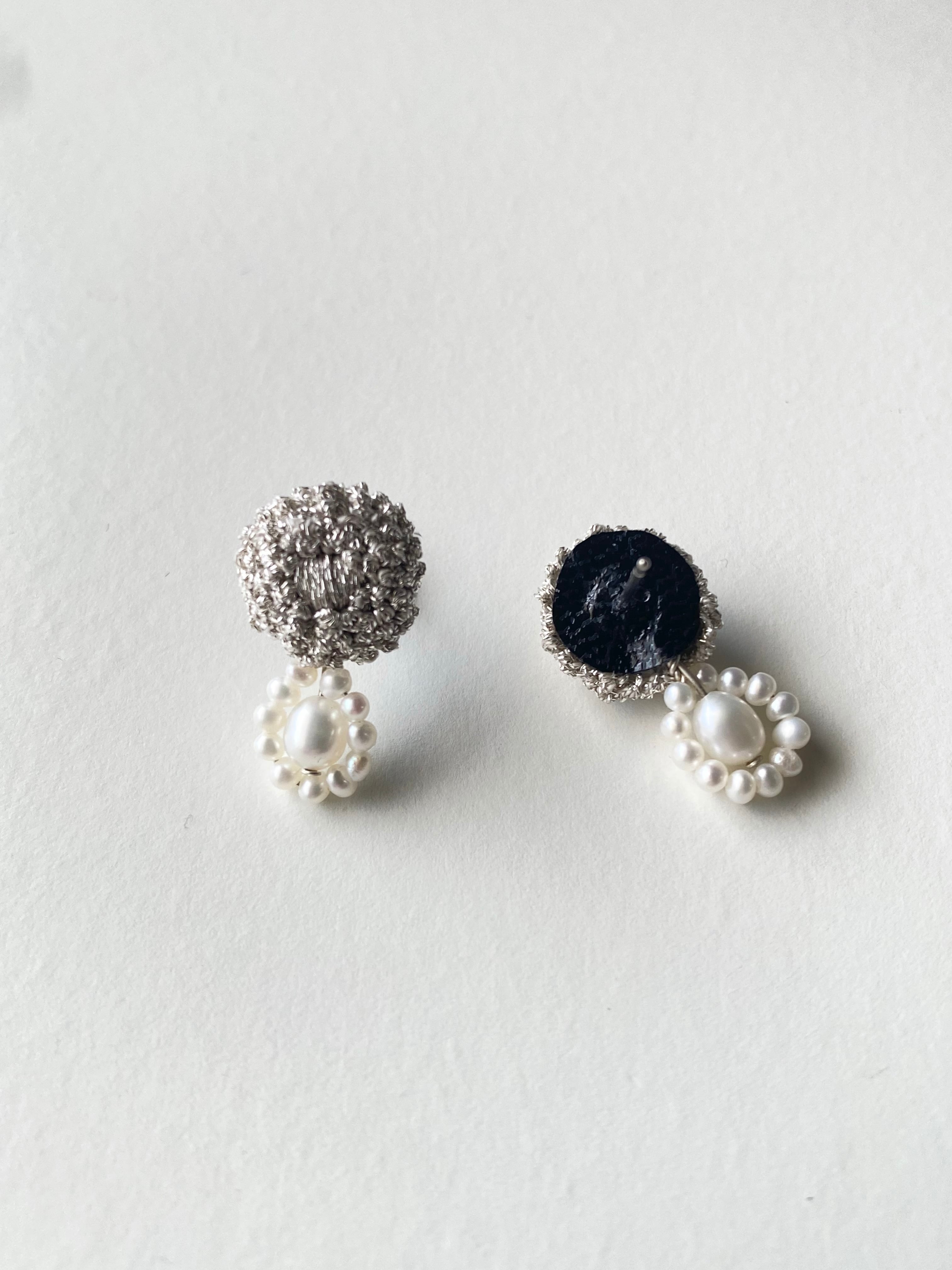 シルバーカラーの刺繍と淡水パールを組み合わせたtsubuピアスは、小ぶりでシンプルなデザインが普段使いからお出かけまでお使いいただけます。肌に馴染むシルバーの輝きが、上品でありながらさりげない存在感を与えてくれます。